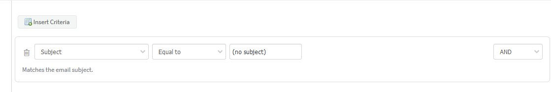 When Kayako parses an email with an empty subject, it adds "(no subject)" to the ticket subject. We will create a rule to prevent this email from creating a ticket.